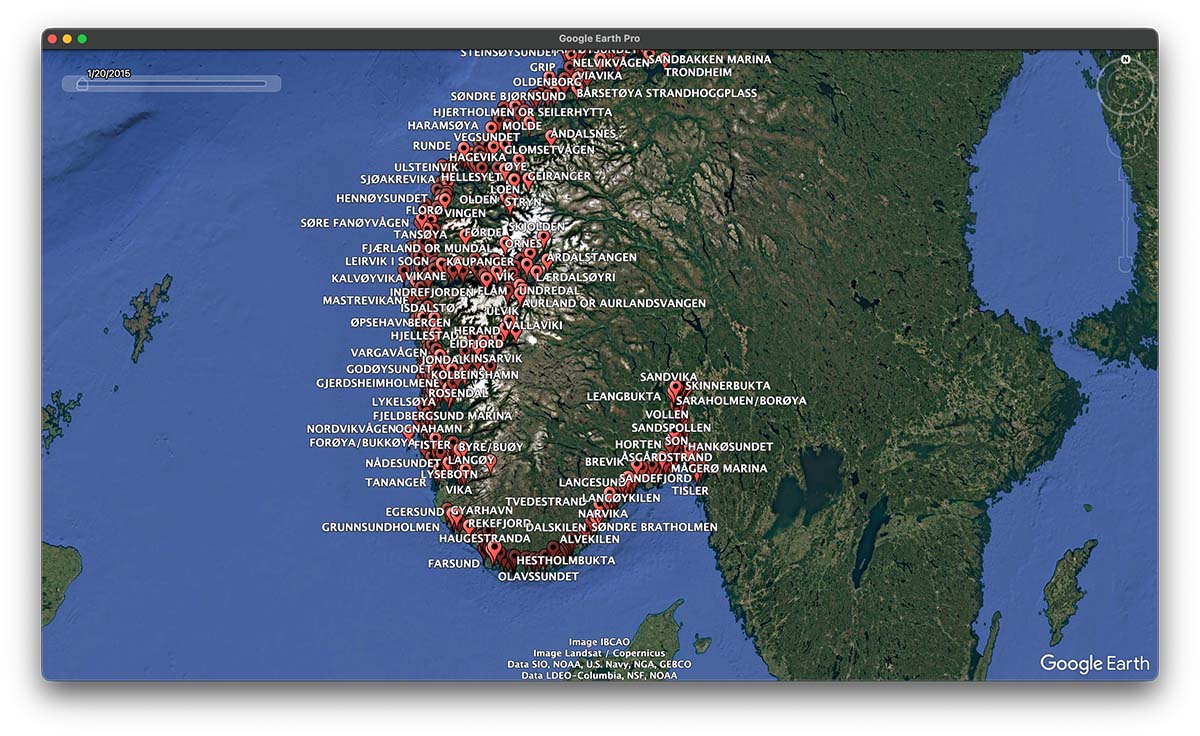 We have built a waypoint file of all the harbours and anchorages covered in the Norwegian Cruising Guide. You can upload and display the waypoints on your plotter and tablet (.gpx format) or Google Earth (.kml format).